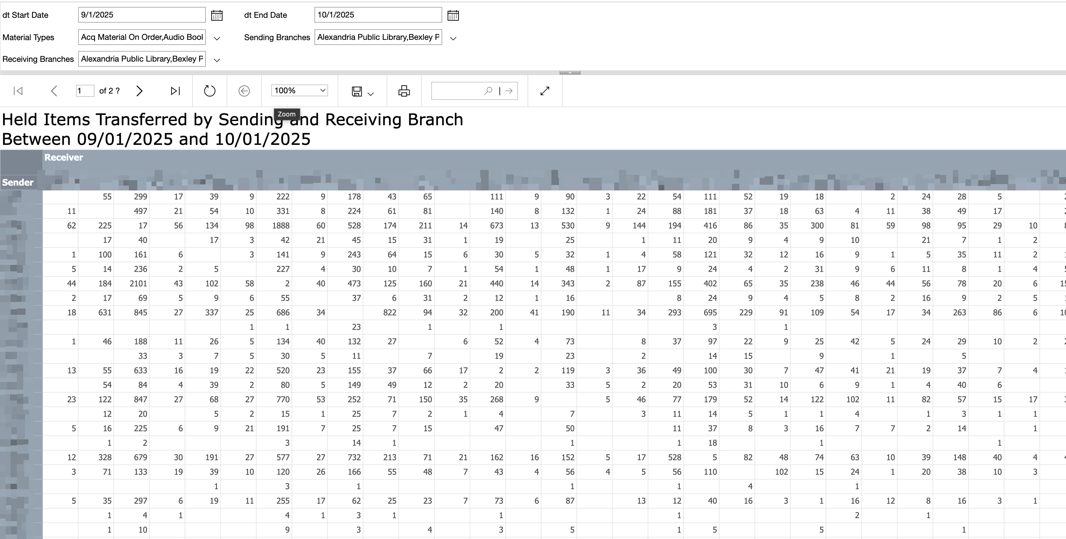 Date Range – Choose a start and end date to define the reporting period (e.g., 09/01/2025 to 10/01/2025). IMPORTANT - This report uses the polaris.polaris.ItemRecordHistory table, so it cannot report outside the limits you’ve established to keep this data (the report will come back blank).