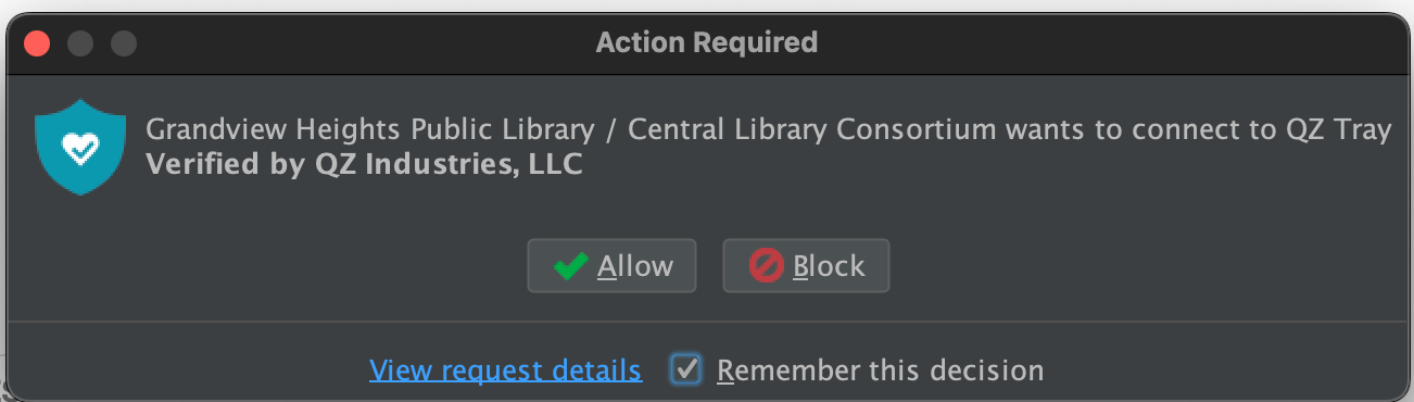 - When you attempt to connect to QZ, you’ll be presented with a dialog similar to the one at the beginning of this article.