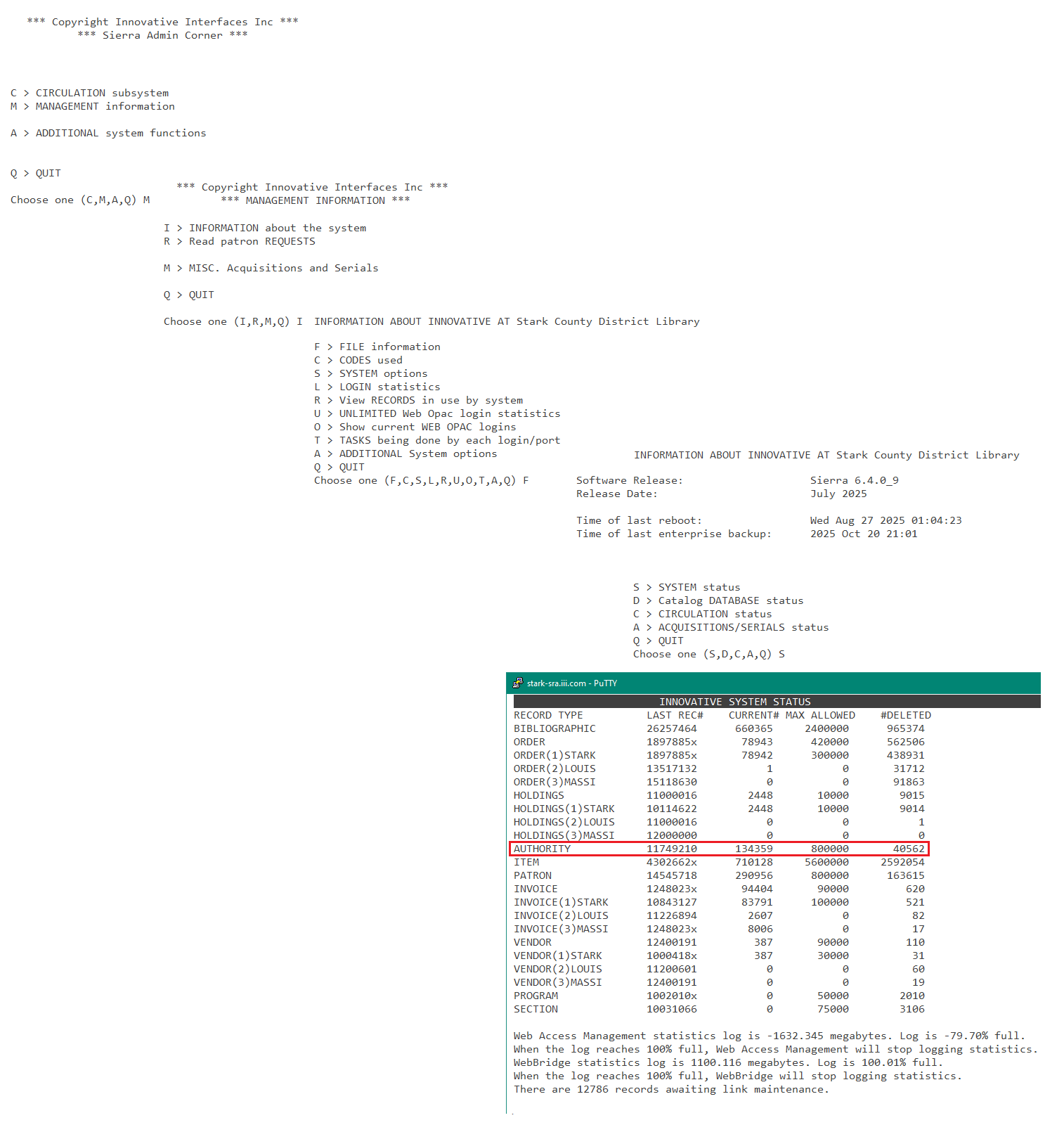 Hello all. We’re a Sierra user and OCLC record users. I’ve noticed recently when attempting to download name authority records from Worldshare that some don’t actually download. I run a headings report at least weekly to delete blind references and duplicate entries. That said, I’m wondering if there is a maximum # of authority files Sierra can handle? I’ve checked Sierra docs, but didn’t see anything about this, specifically. Thanks in advance.
