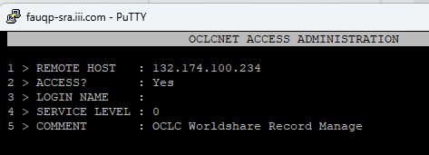 Sorry for the confusing-looking string of deleted posts above. My replies to Johanna were showing up duplicated (to me, anyway), so I deleted a post which deleted all “copies” of my reply. I let Johanna know that our OCLCNET entry has a partially wildcarded IP and uses the login name of “oclcnet”.